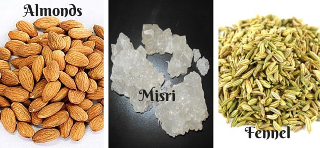 आधा चम्मच मिश्री के साथ, 1 चम्मच सौंफ, 2 बादाम को पीसकर मिश्रण तैयार कर लें। इस मिश्रण को रोज रात को सोने से पहले दूध के साथ लें। इससे आपकी आंखे स्वस्थ होंगी, साथ ही आंखों की रोशनी के बढ़ने से लगा चश्मा भी उतर जाएगा।