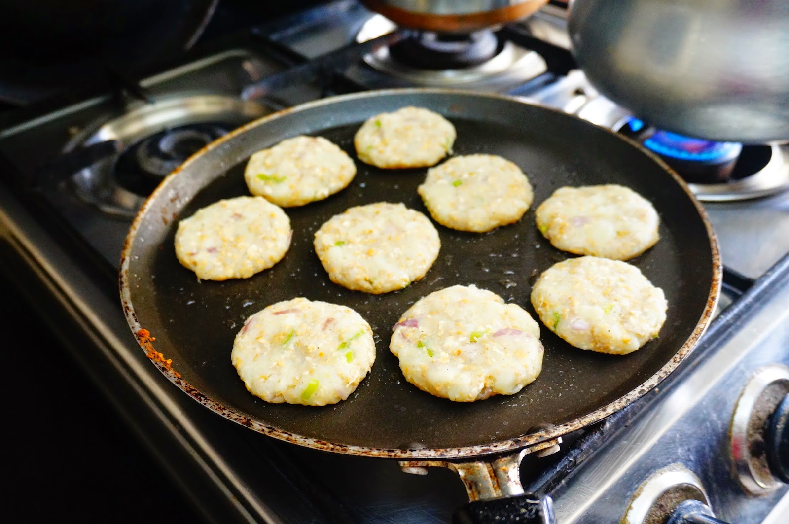 7. एक पैन में तेल को गर्म करें। इसके बाद मध्यम आंच में टिक्की को सुनहरा होने तक फ्राई करें।